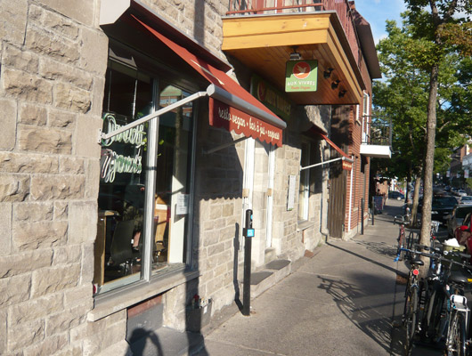 Pour la première fois de ma vie je suis allé dans un restaurant végétarien. Je n’avais jusqu’ici jamais compris l’intérêt de me priver de viande alors que j’adore ça. Mais petit à petit, à force de ne pas vraiment savoir ce que j’ingurgite quand je mange de la viande américaine, et par souci de manger plus sainement, j’ai eu envie de tester une alimentation bio et végé. Mon choix s’est porté sur Aux Vivres, près de chez moi.