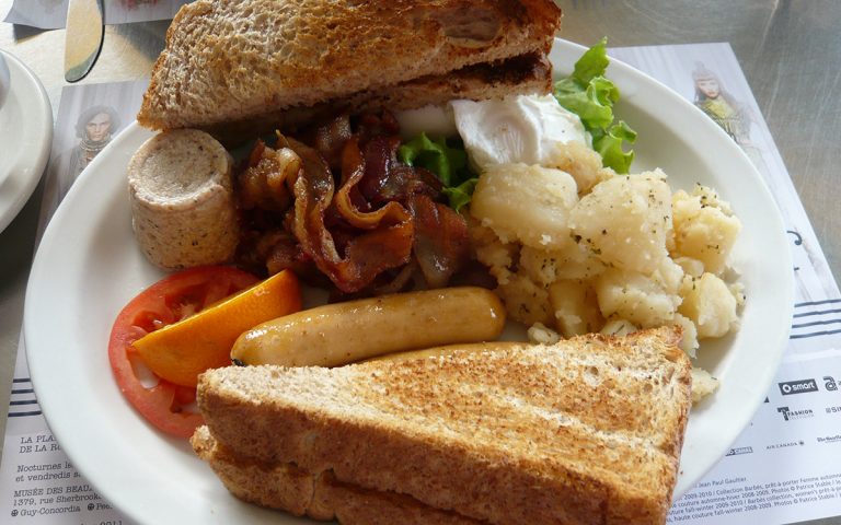 La carte propose de nombreuses formules, pour le petit déjeuner, ou pour le déjeuner. Pour une première visite, je conseillerais l’assiette québecoise, qui permet d’avoir un aperçu des différent plats traditionnels : tourtière, ragoût de boulettes, fèves, et un dessert au choix : blanc-mange ou pouding chômeur (je préfère le premier). Vous pouvez déguster sur place ou choisir l’option à emporter.
