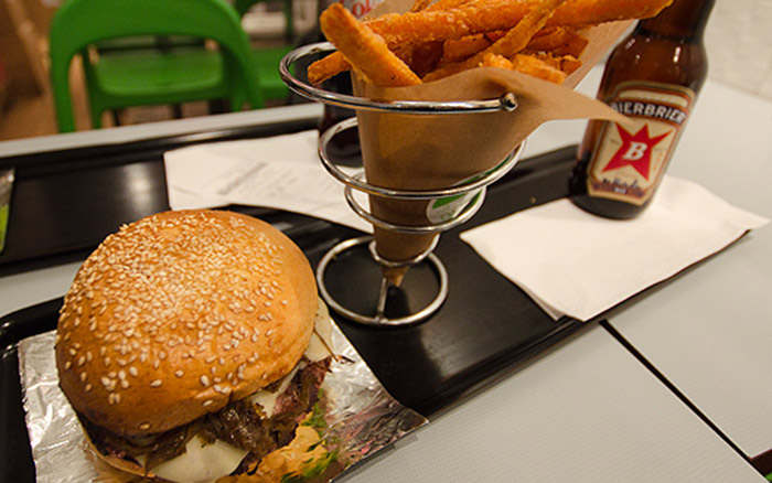 Ces quelques mots écrits à la craie derrière le comptoir annoncent la couleur. Ici, on mange québecois, et uniquement québecois : fèves au lard maison, ragoût de boulette, tourtière, pâté chinois, creton, pouding chômeur, bière d’épinette, soupe aux pois, et j’en passe ! Tout est cuisiné de manière traditionnelle, façon « grand-mère » et servis à la bonne franquette. La petitesse du restaurant facilite les contacts et on se surprend assez vite à discuter avec les serveuses, les proprios ou les autres clients.