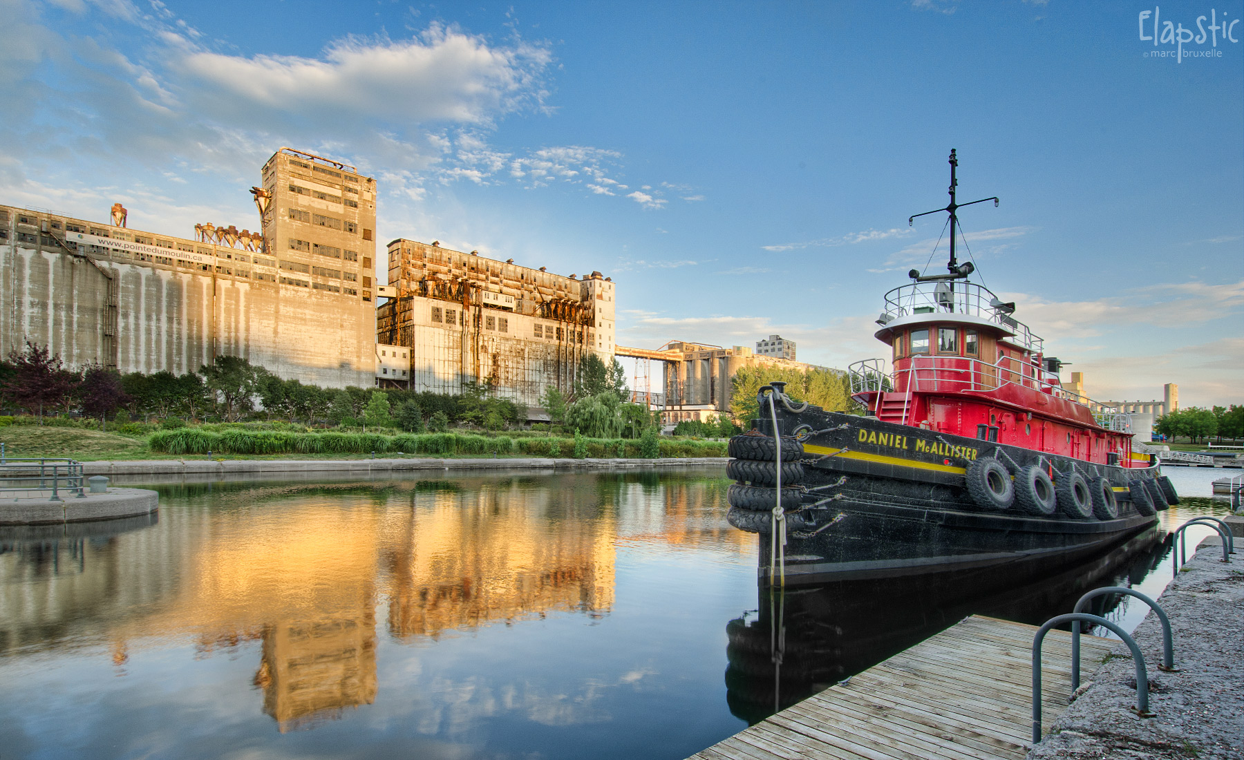 Amarré au Vieux-Port, le remorqueur Daniel McAllister a plus d’un siècle d’existence derrière lui! En 1907, Ce joli bateau rouge et noir sort des chantiers navals de Collingwood, à 150 km au nord de Toronto. Il porte alors le nom de Helena, et commence sa carrière sur la côte atlantique. Dans les années 40, alors qu’il navigue sur les eaux des Grands Lacs, on remplace sa vieille machine à vapeur par un moteur diesel, plus puissant.