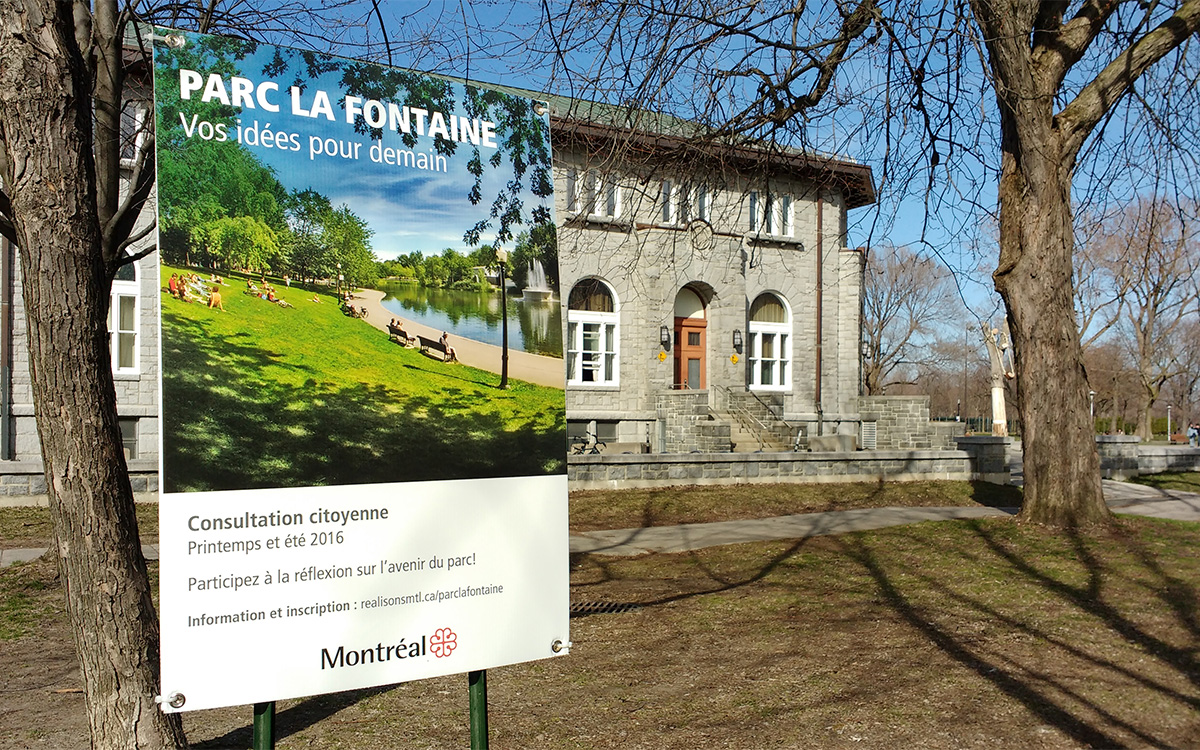 Du 26 avril au 31 août 2016, la ville de Montréal lance une consultation citoyenne pour améliorer le parc Lafontaine. Par le biais de sondages en ligne et d’ateliers participatifs ouverts à tous, l’idée est de recueillir les suggestions des habitants de Montréal soucieux de redonner vie à ce parc emblématique.