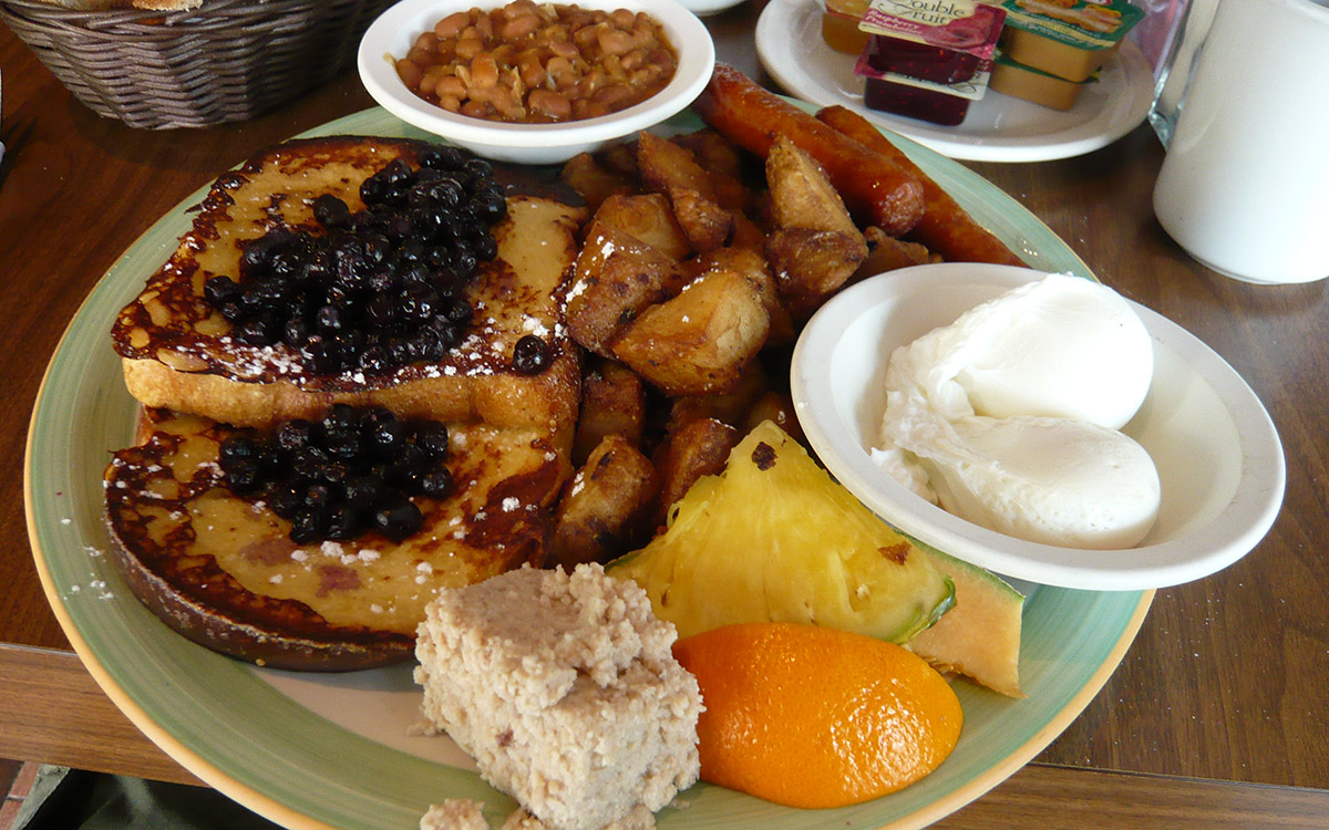 Nous ne sommes pas parvenus à finir nos assiettes, mais on a réussi à goûter à tout. Et c’était excellent ! Le creton est le meilleur que j’ai mangé (frais et moelleux). Le pain doré aux bleuets était savoureux, et les patates fondantes (aussi bonnes que celles de l’Avenue, sans les deux heures de file devant)