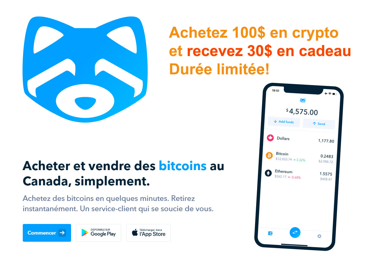 - Vous devez acheter ou vendre pour 100$ ou plus de cryptomonnaie, en une fois ou en plusieurs fois. Vous recevrez ensuite 30$, que vous pourrez utiliser pour acheter du bitcoin, ou que vous pourrez transférer gratuitement sur votre compte bancaire via un virement Interac.