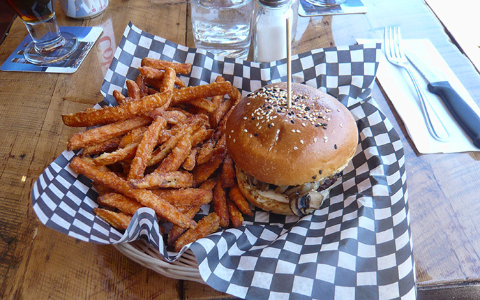 Les Foccacia étaient bonnes, même si c’est difficile de se tromper quand on fait gratiner du fromage de chèvre sur du pain. La serveuse trouvait que les Foccacia était trop grillées, et m’a proposé de les refaire. J’ai failli lui dire que c’était la seule chose bien cuite dans l’assiette mais je me suis retenu :)