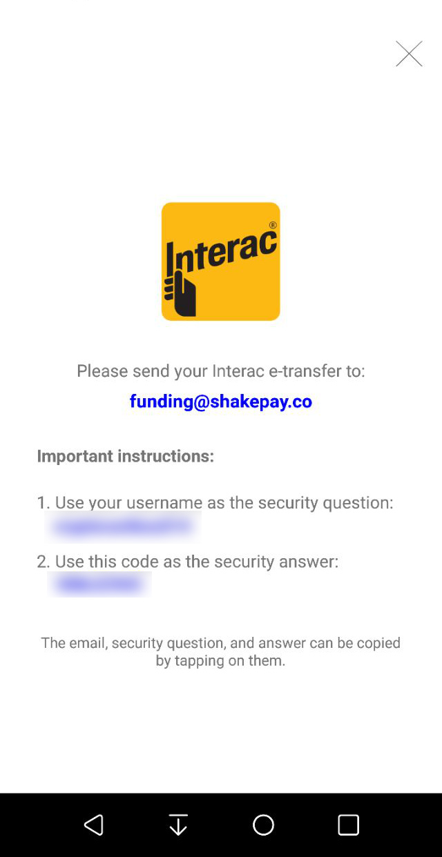Please send your Interac E-transfer to: funding@shakepay.com : adresse où envoyer le virement Interac. Prenez soin de vérifier sur votre application l’adresse d’envoi, qui peut être différente de celle affichée ici lors de la rédaction de l’article.